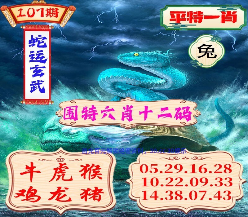 107期解蛇运玄武图: 六肖:牛虎猴鸡龙猪 十二码:05.29.16.28.10.22.09.33.14.38.07.43